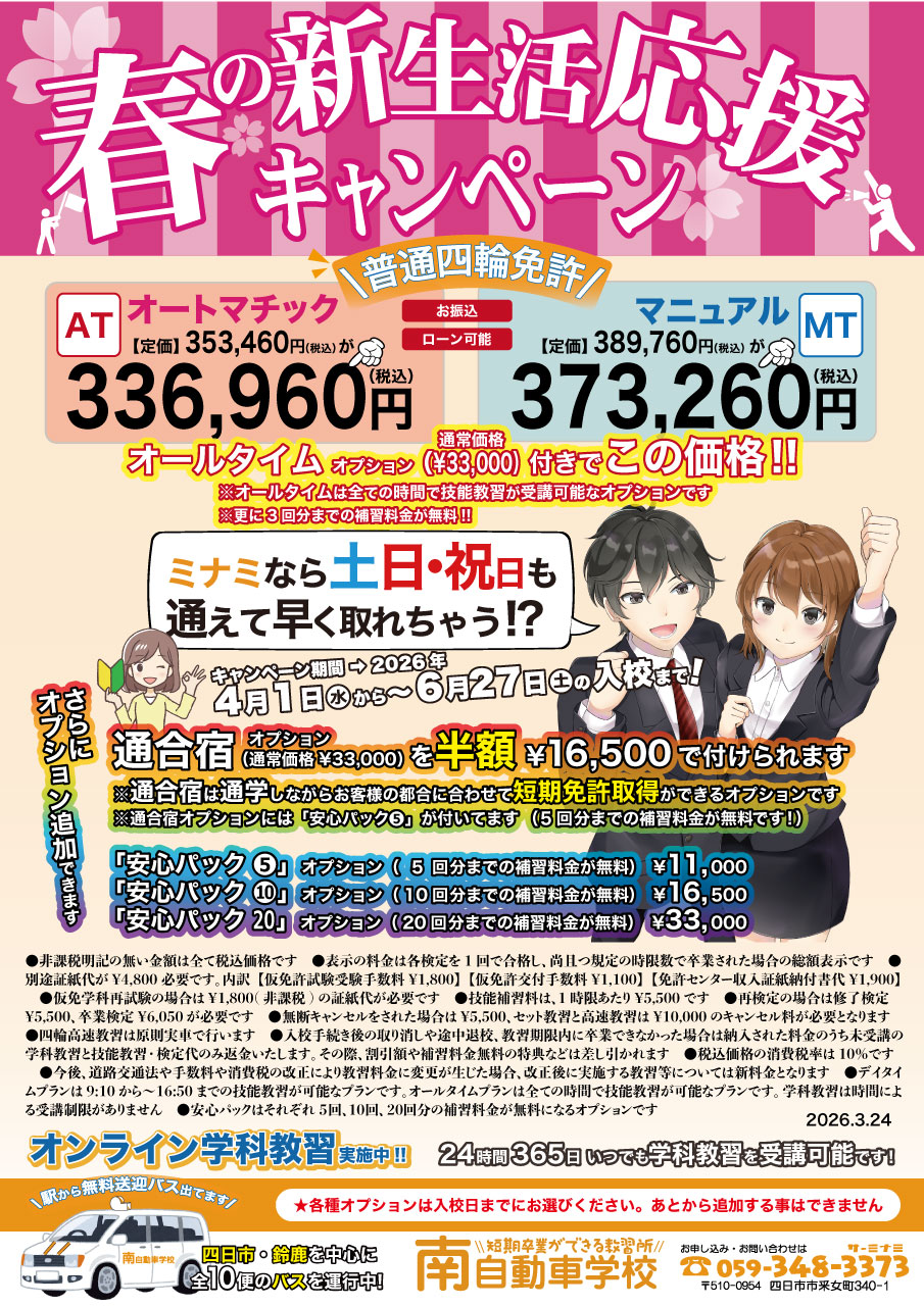 春の新生活応援キャンペーン【2026年4月1日から〜6月27日のご入校まで】