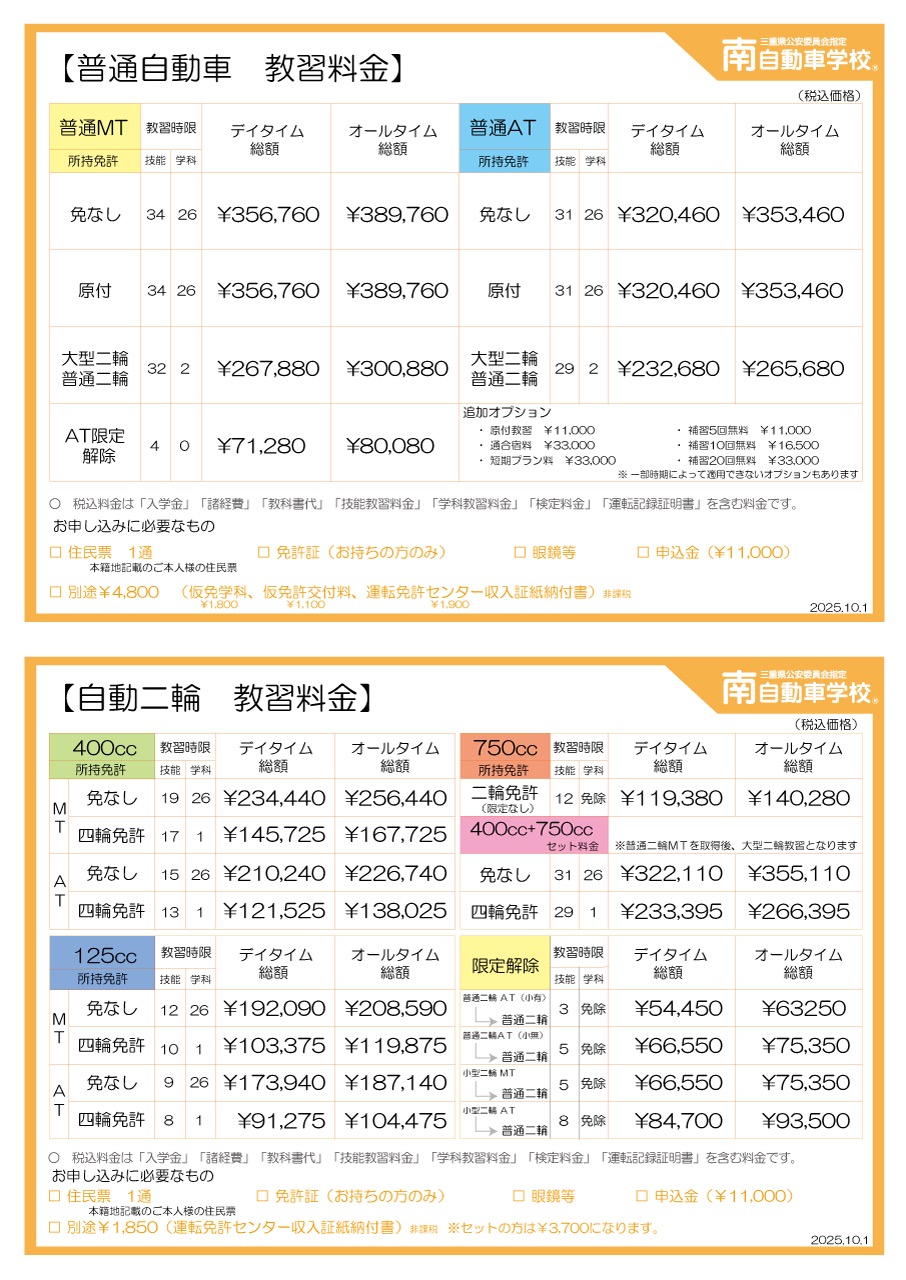 中途退校または、転校、その他自己の都合により教習を中止する場合は、納入した入学金及び、オプション料金は返金できません。
